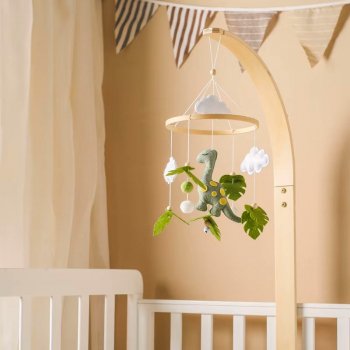 Wooden Dinosaur Baby Crib Mobile with Music – Felt Hanging Rattle Toy