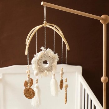 Wooden Baby Crib Mobile with Rattles – Boho Hanging Bed Bell Toy